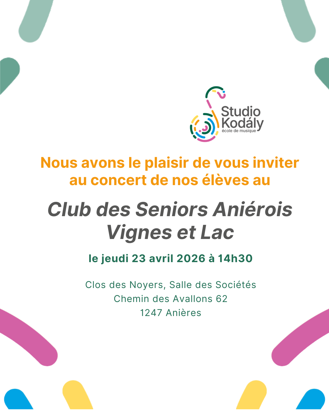 Nous avons le plaisir de vous inviter au concert que 4 de nos élèves donneront au Club des Seniors Aniérois « Vignes et Lac » ![]()