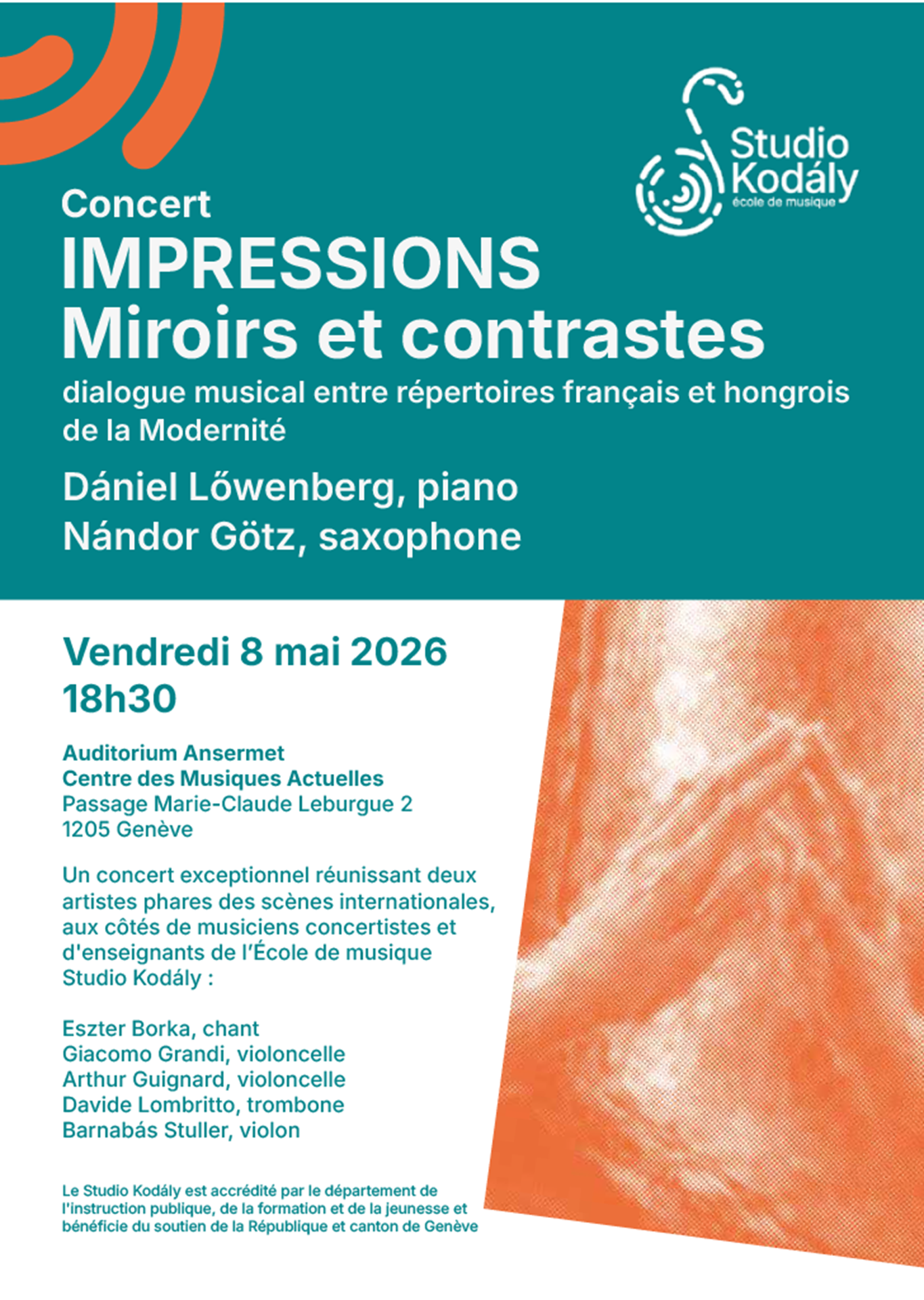 Un concert exceptionnel réunissant deux artistes phares des scènes internationales, aux côtés de musiciens concertistes et d’enseignants de lʼÉcole de musique Studio Kodály :